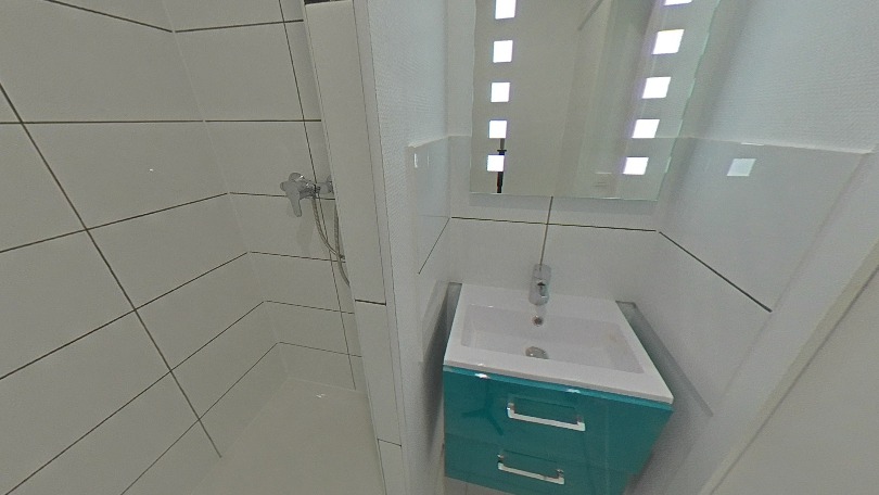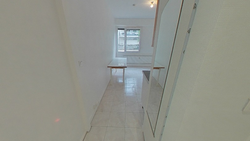 Studio dans résidence avec entrée, séjour, coin cuisine équipée kitchenette (frigo, plaques électriques, évier, raccordement machine à laver) et rangements, salle de douche avec wc. (table NON Fournie)
